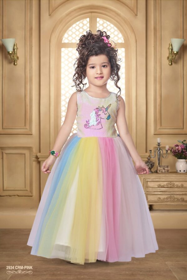• Multi-Colored, Flared Long Frock With Lining. Baby Gown With Cut Sleeves And Round Neck.