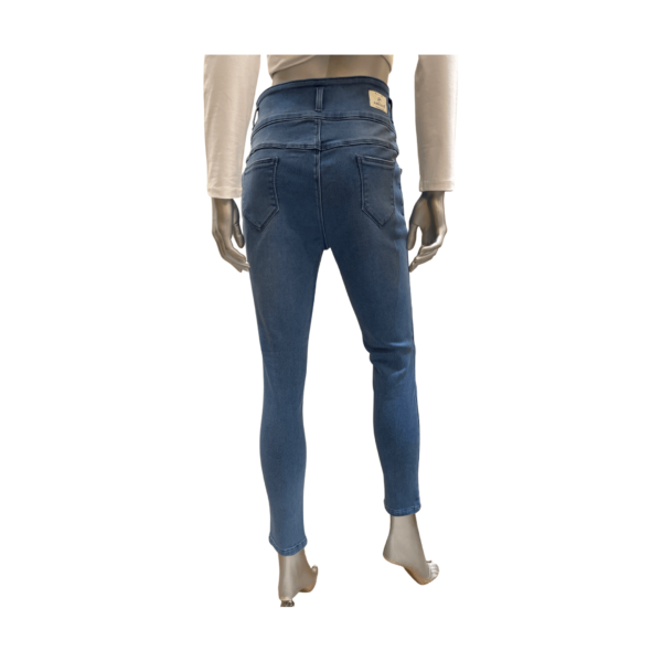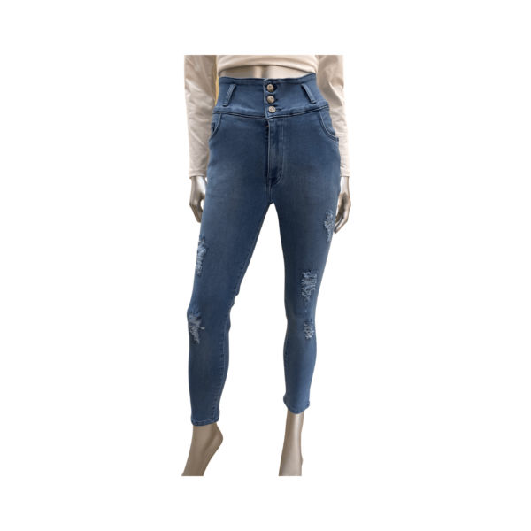 • High-Waist 3-Buttoned, Blue Denim Jeans. Slim Fit.