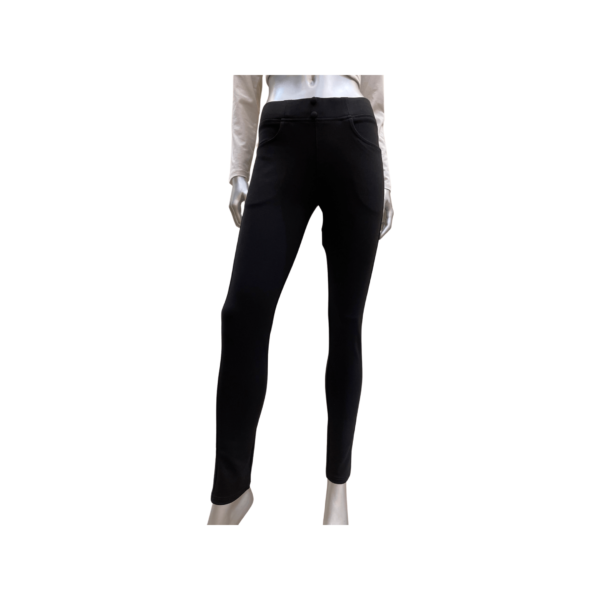 - Black Jeggings Styled With 2 False Buttons And Pockets.