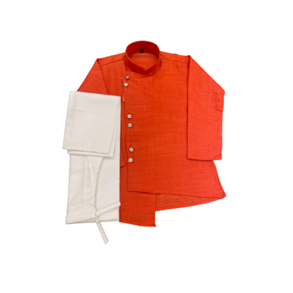 • orange kurta pyjama set for boys. Airy and cotton fabicated.
