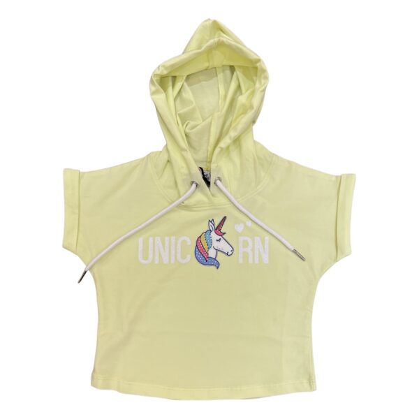 - Lemon Colored T-Shirt With A Hoodie For Your Baby Girl, Perefct For Summer Casual Wear.